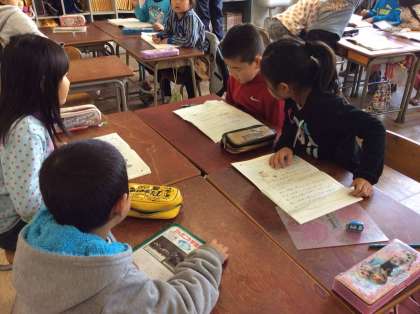 今日は、名人を紹介した文章を発表し感想を伝え合う活動を行いました。