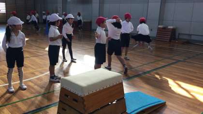 手のつき方や、踏切のタイミングを身振り手振りを交えて熱心にアドバイスをし合うことができました。