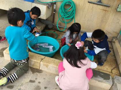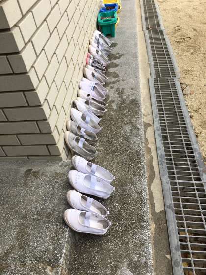 生活科「おてつだいをしよう。」の学習で、上ぐつ洗いに挑戦しました。