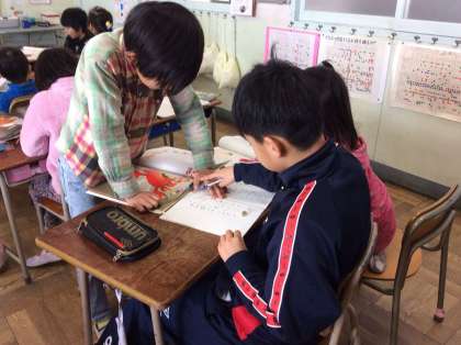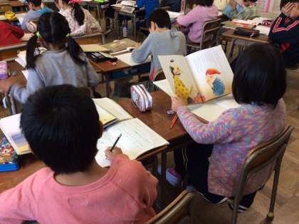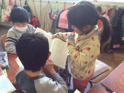 今日は図書の時間に選んだ昔話の本のおもしろいところをノートにまとめて、文章の相互チェックをしました。来週は今日書いた文章を紹介カードにまとめて発表会をします。