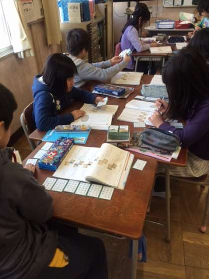まず、百枚の取り札の中から、教科書にのっている十首の取り札を探しました。