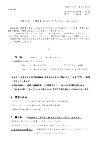 旭区マラソン大会のお知らせ