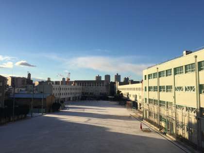朝から運動場の雪を見て、喜ぶ子どもたち。