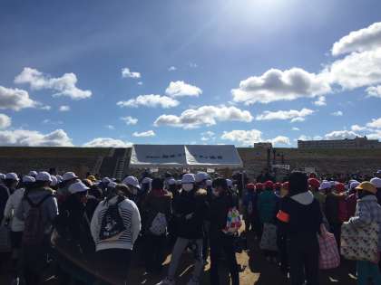 スタート地点に向かうときも、冷たい風に吹かれながらも元気のいいこえが聞こえていました。