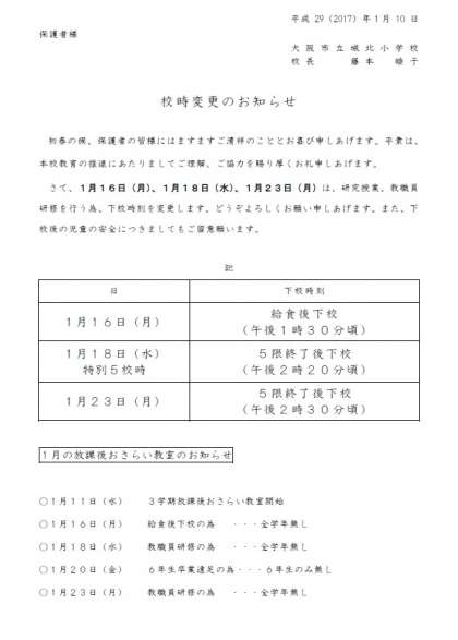 明日、1月18日(水)は、旭区の教員研究発表会がありますので、【特別5校時】になっています。