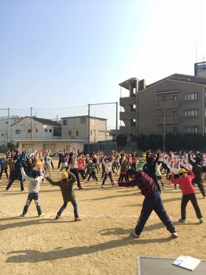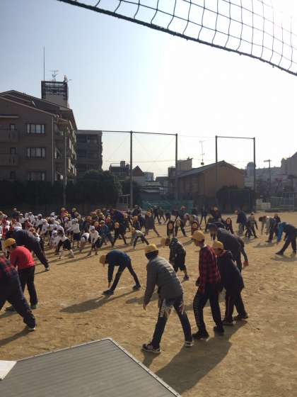 子どもたちは、寒さに負けずラジオ体操をがんばっています。