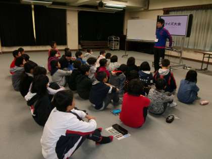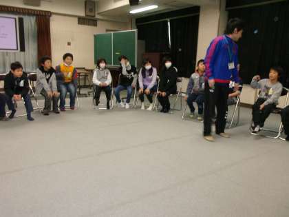 授業の最後には、覚えた言葉を使ってフルーツバスケットを行いました。