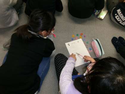 今日は、あいさつや小学校の名前など普段よく使う言葉を韓国語で言うとどういうのか習いました。言葉も教えてもらい、とてもうれしそうでした。