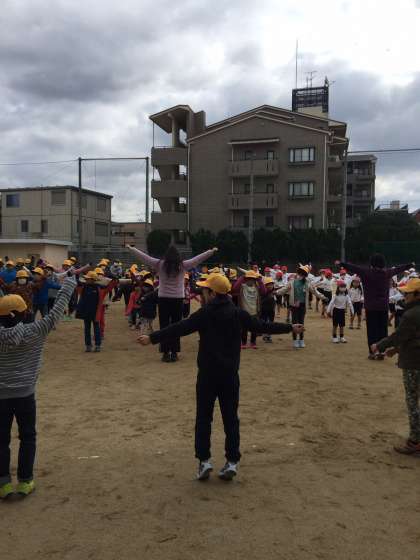 子どもたちは、休み時間にラジオ体操の練習を続けています。