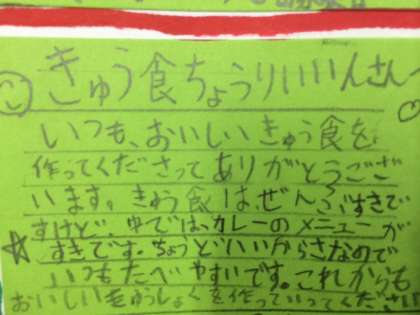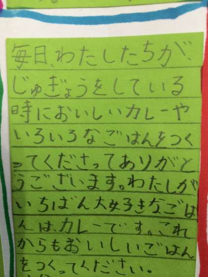 *道徳の時間に、給食調理員さんへの感謝状を書きました。