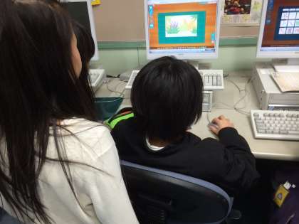プログラミングのソフト(文部科学省のHP)を子どもたちだけでしていました。