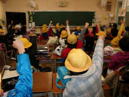 終わりの会では、「明日の学習発表会がんばるぞ〜!」とみんなやる気まんまんです。