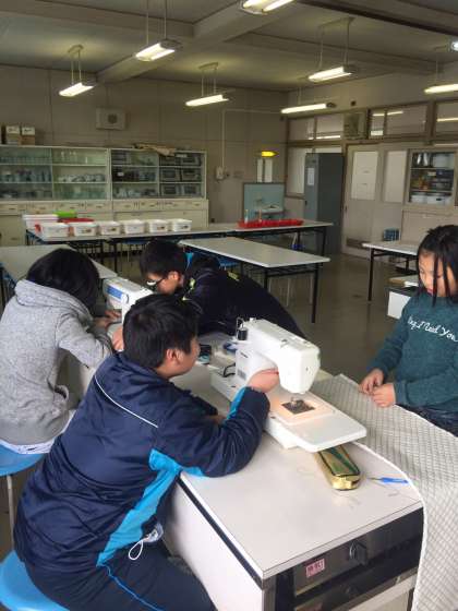 学校での地震の際に安全に行動できるように、防災ざぶとんを作り、下の学年の子どもたちにプレゼントをしてくれます。