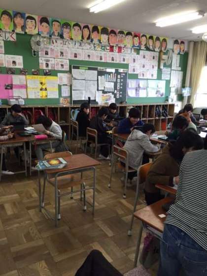 文字を様々な色に変えたり、文字の大きさを変えたり、背景を班で統一したものに変更したりと、各班工夫を凝らして、取り組むことができました。