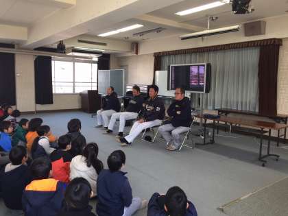 昨日、プロ野球チーム「オリックスバファローズ」からコーチに来ていただき、夢授業をしていただきました。