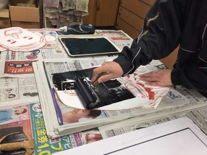 作った顔にインクを塗っている時は、「どうなるのかな〜」と不思議そうな顔をしていました。刷り上がると、