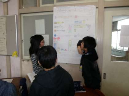 国語の授業で作っていたポスターが完成し、発表を行いました。