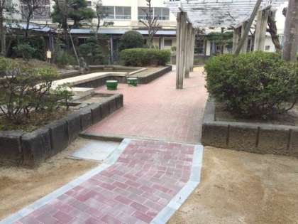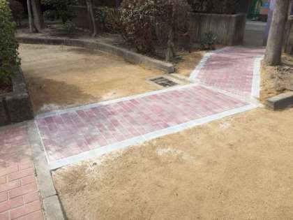 本校の池の前の広場に向かう遊歩道の工事が完了しました。