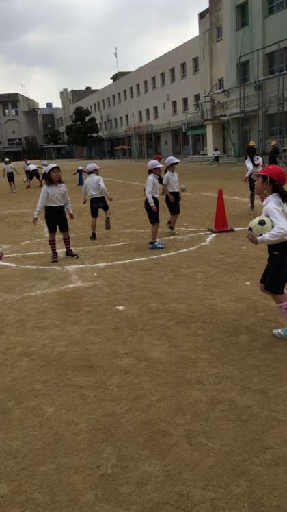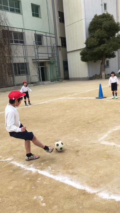 2学期に練習したパスとシュートの復習をしてから、「たまごわりサッカー」に挑戦しました。