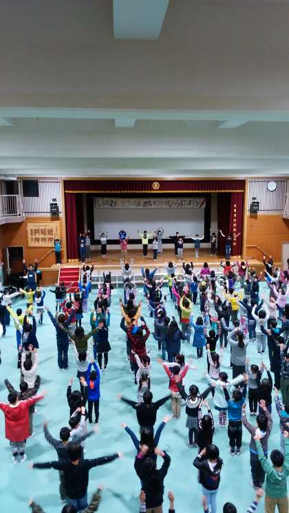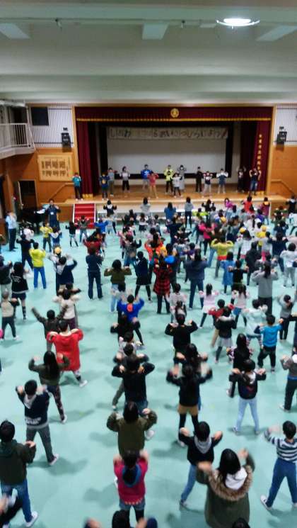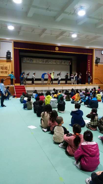 その成果を生かして、児童全体に動きの説明や見本をみせました。
