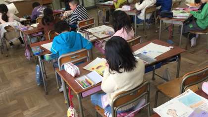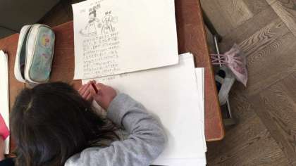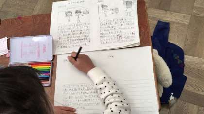 お家の人へのインタビューから始まり、下書きを経て、清書をしているところです。