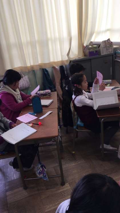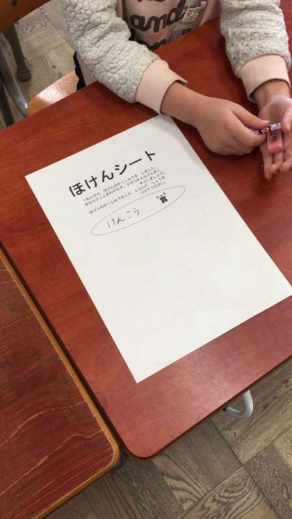 最後に1年間の発育測定の記録を返すと、1年間の自分の成長を振り返り「〇cm背が伸びた!」と喜んでいました。算数でcmを学習したので書いている意味も理解でき、楽しんで記録を見ていました。