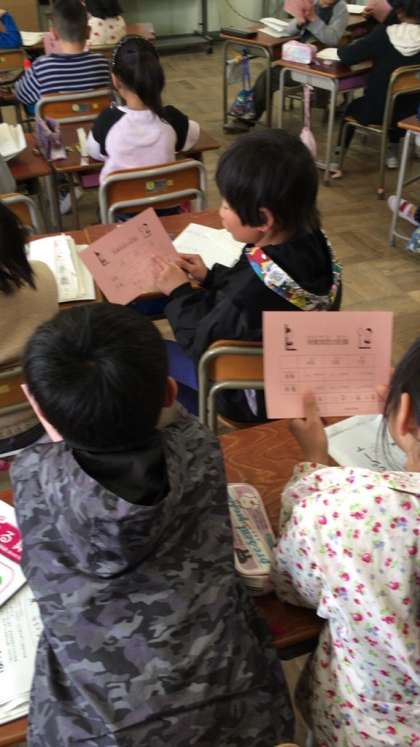 1学期からつけてきた「自分で健康チェック」を振り返り、起床・就寝時刻等を見てチェックシートで確認をしました。