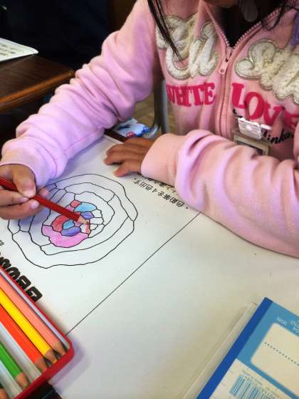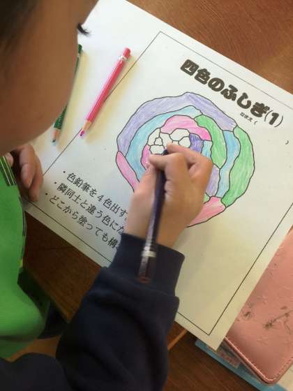 「4色のふしぎ」というプリントに取り組みました。