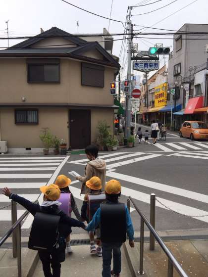 写真は、1年生の様子です。集団下校を続けて、帰り道を覚えましょう。