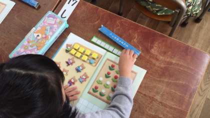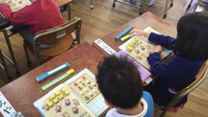 算数ではブロックを使って数を数える学習をしました。