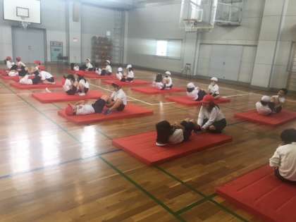スポーツテストに向けて、上体おこしの練習をしました。