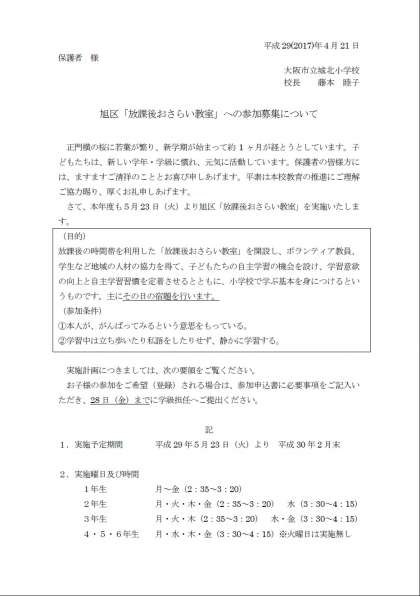 今年度も、5月23日(火)から放課後おさらい教室を実施します。