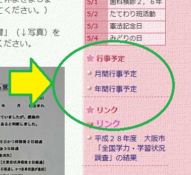 このホームページの右側には、行事予定のリンクがあります。