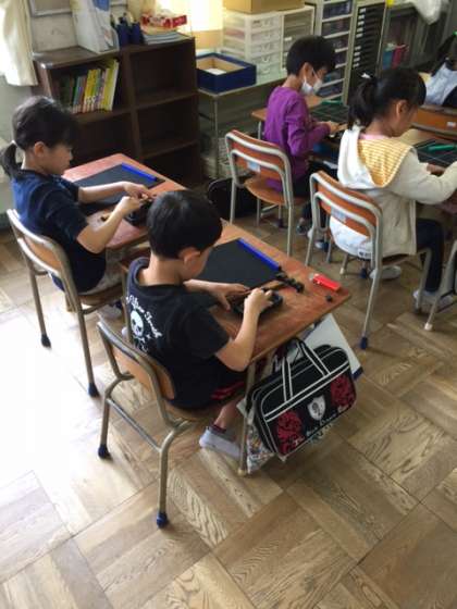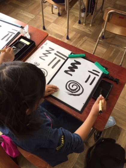 毛筆用具の置き方や扱い方、正しい姿勢などを確かめました。