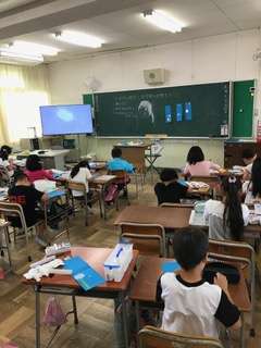 今日の図工では、たんぽぽを吹いている自分の顔を描きました。みんなマイネームペンとパスを使って上手に描くことができていました。たんぽぽは絵具を使って描きました。完成が楽しみです。