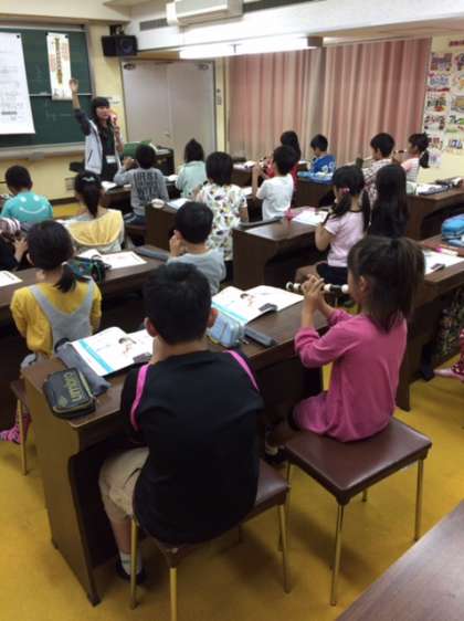 リコーダーの持ち方や姿勢に注意して、「シ」の音を出す練習をしました。