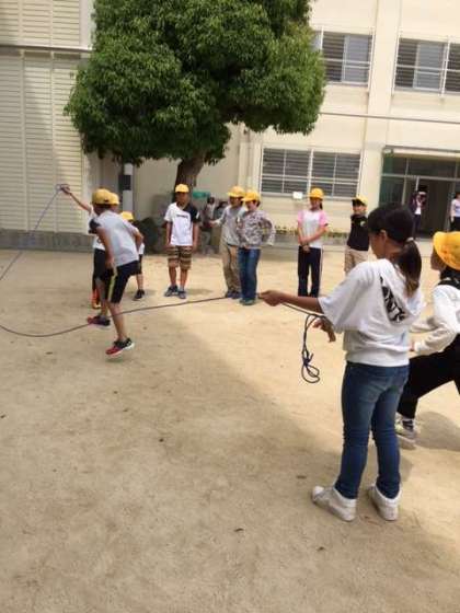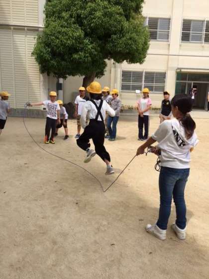 毎日給食後、みんな遊び係が中心となって、みんなで元気に遊んでいます。きょうは大縄をしました。みんなでアドバイスし合い、苦手な児童もたくさん跳ぶことができていました。