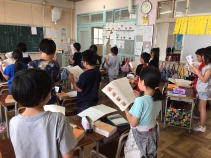 国語科「ヤドカリとイソギンチャク」の学習の様子です。