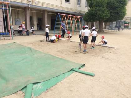 算数で学習した巻き尺を使って、自分たちで記録を測定することもできました。