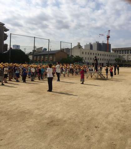 毎週、児童朝会の前に全校児童でラジオ体操をしています。