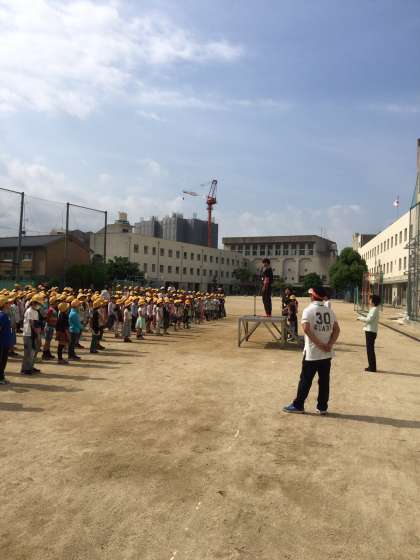 児童朝会では、校長先生のお話、今週の誕生日の児童の紹介がありました。