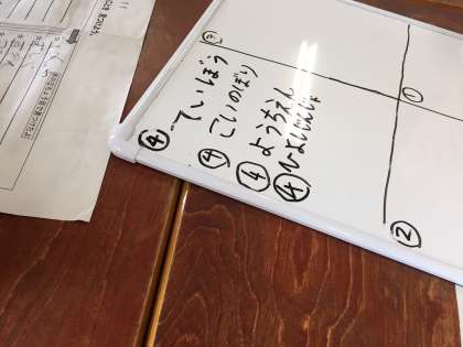 生活の学習では、先日の町たんけんを振り返り、班で見つけたことを話し合いホワイトボードにまとめました。