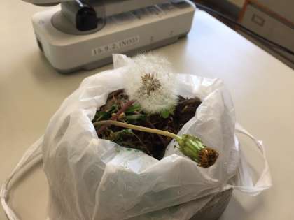 本物のたんぽぽを見て、「わたげや!」「閉じている!」「たねがいっぱいだ!」などの声が聞こえてきました。