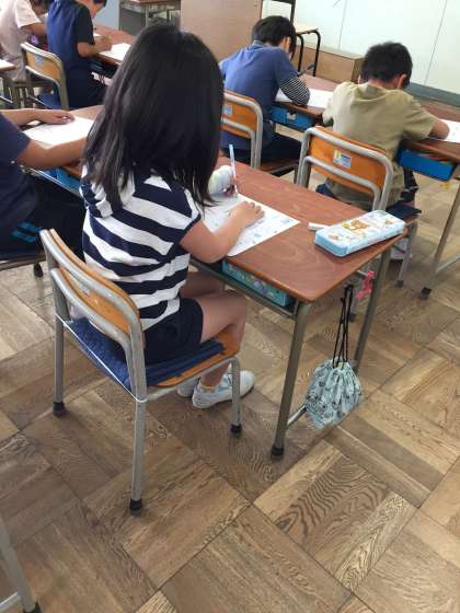 国語の時間に、書写シートできれいな字の書き方の練習をしました。椅子の座り方、鉛筆の持ち方、鉛筆を持つ腕の位置など・・・