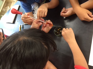 という予想にたどりつき、種子に養分があるかどうかヨウ素液を使って実験をしました。