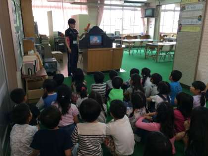 借りた後は、図書館補助員の方に、紙芝居を読んでもらいました。