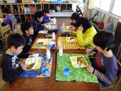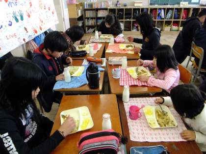 普段とはちょっとちがった給食タイムにみんなうれしそうでした。