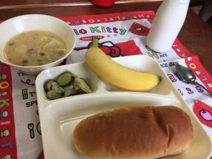 コーンクリームシチューもバナナも大人気のこんだてで、