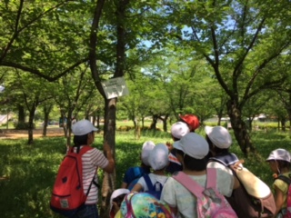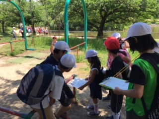 城北公園のいたるところに「学校クイズ」や「学校のスローガンの一文字」などがあり、「こっちこっち!」など班のみんなに教えている掛け声が聞こえました。