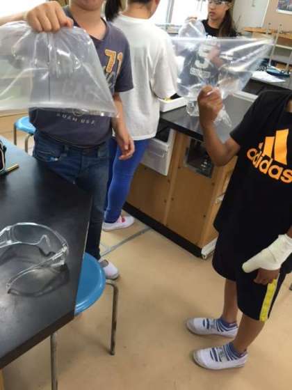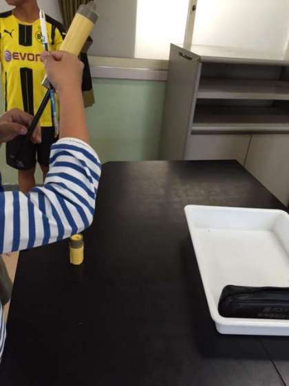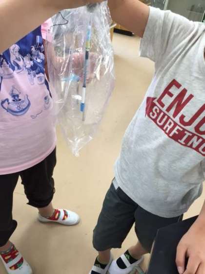 人と動物の体の学習をしています。今日は、呼吸に含まれる成分について、気体検知管を使って調べました。